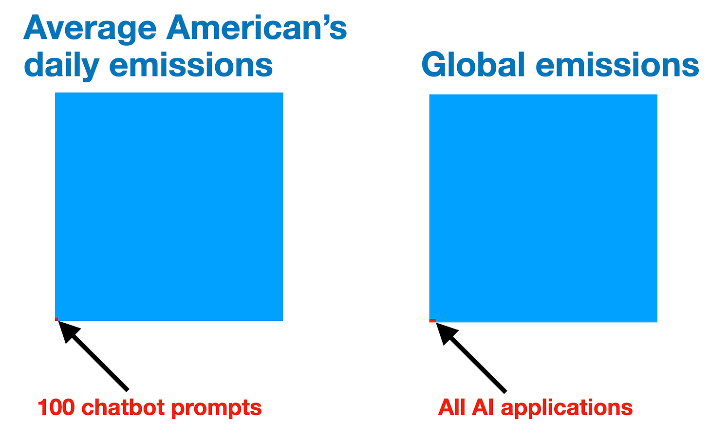 This post is not about the broader climate impacts of AI beyond chatbots1, or about whether AI is bad for other reasons (copyright, hallucinations, job loss, risks from advanced AI, etc.). I’m not especially “pro” or “anti” AI. I’m writing this because people who care about the climate and want to help the environment are getting distracted by a non-issue.
