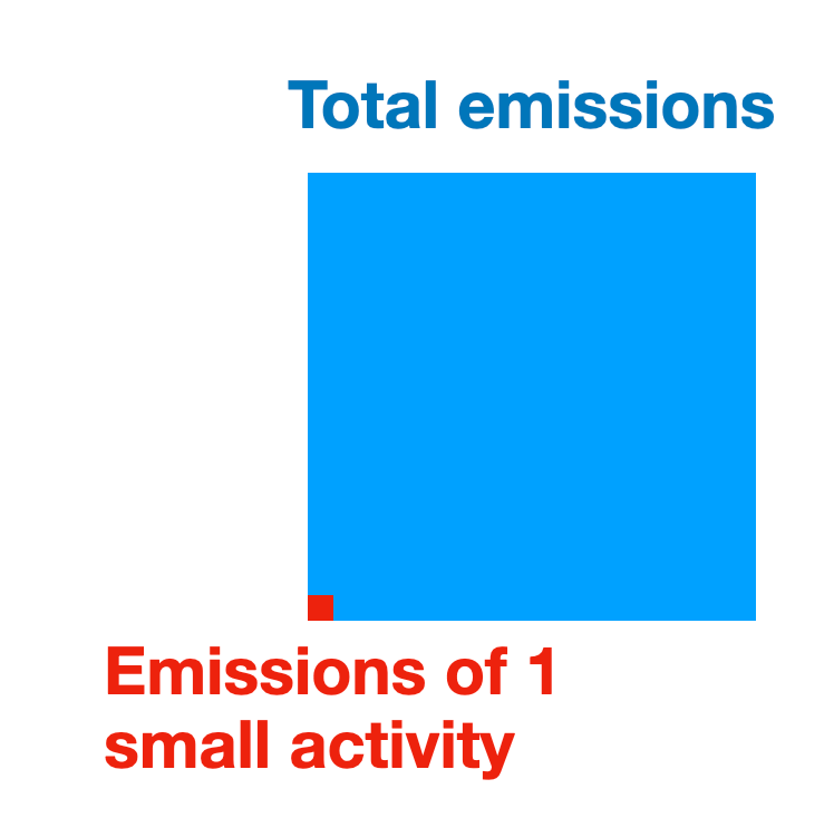 Some people think tiny parts of our emissions “add up” when a lot of people do them. They add up in an absolute sense, but they don’t add up to be a larger relative part of our overall emissions. If AI chatbots are just a 100,000th of your personal emissions, they are likely to be around a 100,000th of global emissions as well. We should mostly focus on systematic change over personal lifestyle changes, but if we do want to do personal lifestyle changes, we should prioritize cutting things that are actually significant parts of our personal emissions. That’s the only way we could reduce significant amounts of global emissions too.