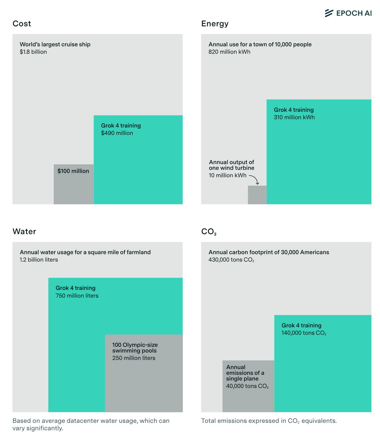 Data centers do put more strain on local grids than some other types of buildings, for the same reason a stadium puts more strain on a grid than a coffee shop: the stadium is serving way more people at once. Data centers are building-sized computers that tens of thousands of people are using at any one time. The reason they stand out is that they gather a large amount of aggregate energy demand into a tiny place, not that they’re using a lot of energy per user. While data centers are not environmentally perfect, many stories about their impacts on local grids are wildly overblown. In the equation (Total Energy) = (Energy per Prompt) x (Number of Prompts), energy per prompt is low, but the number of prompts in a data center is extremely high, so the total energy they use is high. This means that your personal use of AI is adding extremely tiny amounts of energy demand, and of all the things you can cut to reduce your emissions, it’s one of the very least promising.